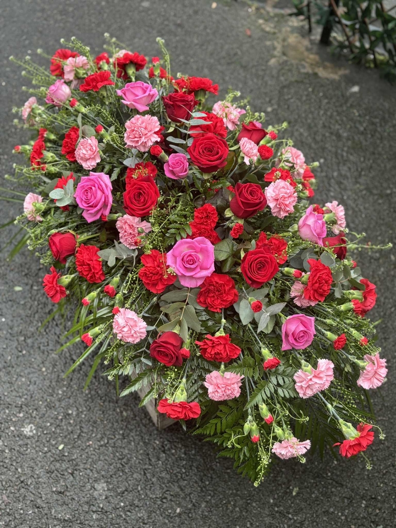 Red and Pink Casket Spray